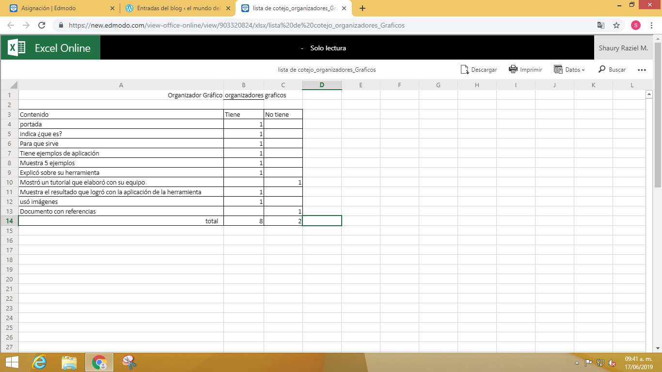 Evaluación heterogénea en este trabajo ocupe exel para hacer una lista de cotejo.